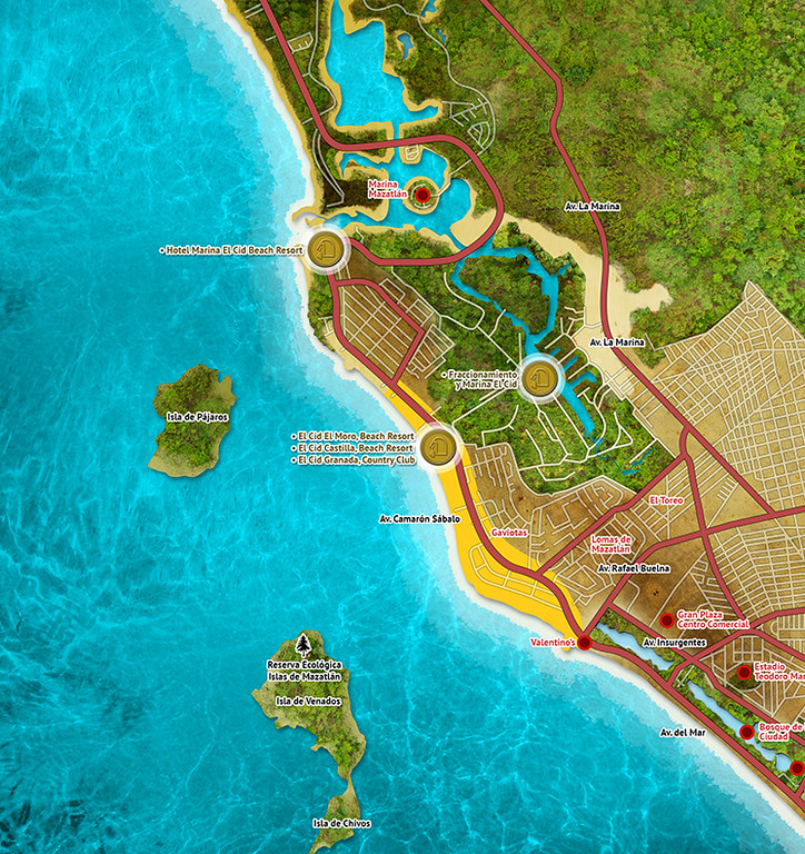 This city is also perfect for sport fishing, golf and exploration. Marina El Cid development heralds the rebirth of recreational boating, and premier hotel accommodations in this beautiful port city. Boaters, sport fishing enthusiasts and golfers will delight in the authentic Mexican charm and exciting attractions of the historic city of Mazatlán. Interested in whale watching? Taking a tour to Deer and Stone Island? Or enjoying a spectacular sunset on a trimaran? All can be arranged through Marina El Cid’s Aries Fleet, which features the newest and fastest boats in México.